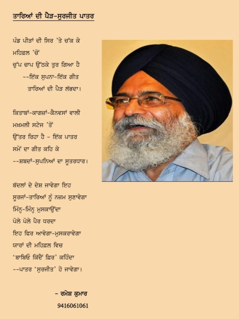 ਤਾਰਿਆਂ ਦੀ ਪੈੜ-ਸੁਰਜੀਤ ਪਾਤਰ